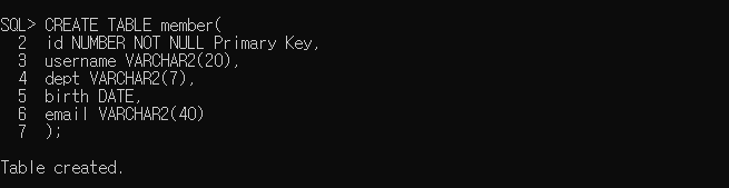 3 username VARCHAR2(20), --> 생성되는 member테이블의 칼럼명