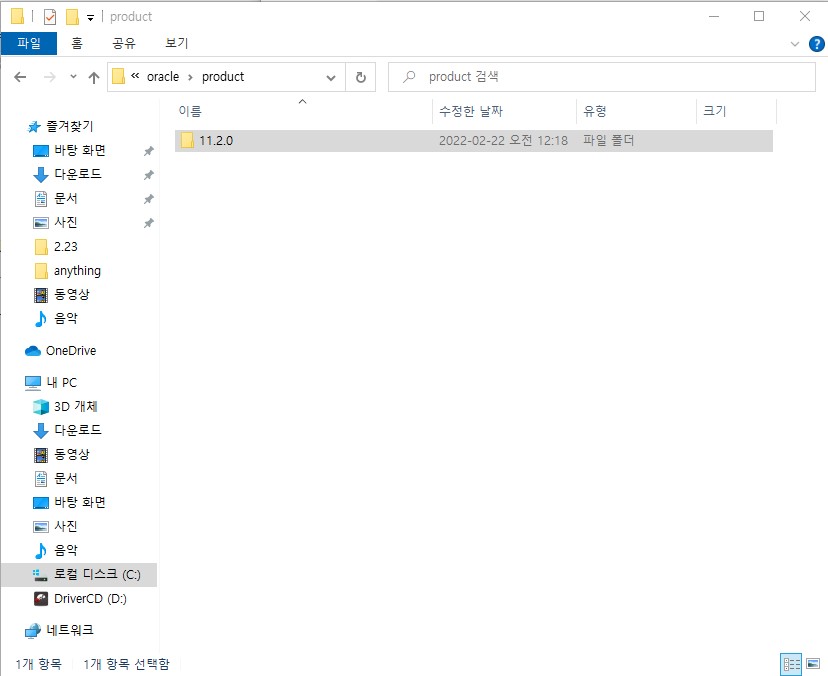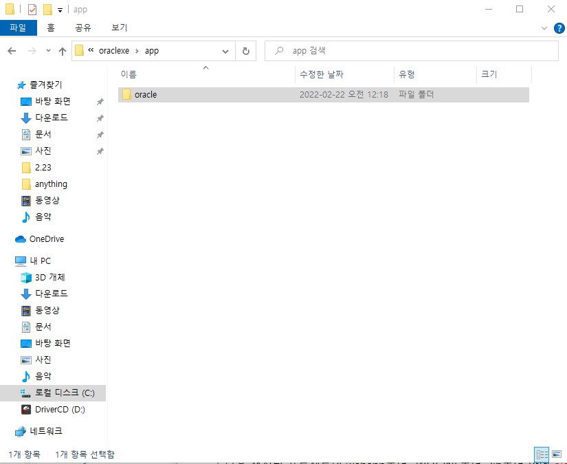 저는 저장할때 위치를 따로 지정하지 않았기 때문에 C:\에 oraclexe가 저장되어 있습니다.